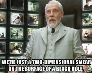So that's one thing I've been doing. I try to write a little each day. I read. Today I've been reading about the Holographic Principle. It inspired today's meme.