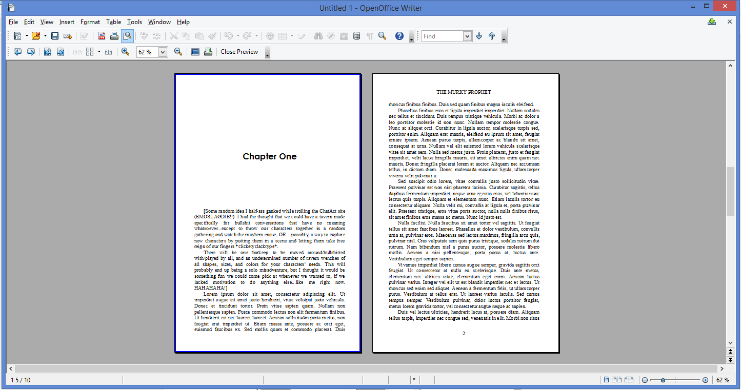 IMPORTANT NOTE: Sometimes OpenOffice will try to force a ghost page on you and no matter what you do, your numbering will be off for no apparent reason. The ghost page only appears on the "Page View" option (what I've circled below). Seriously? The fuck is this shit? It counts the ghost page as 1, which throws off every page thereafter. No bueno.