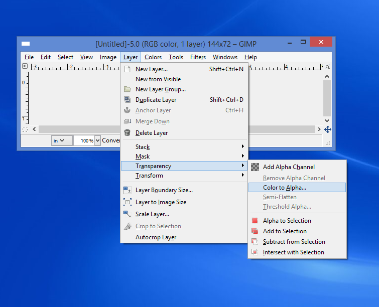 Once you have your canvas size selected, you need to "color to alpha." This makes your base canvas transparent, so when you upload the images, it doesn't create funky gray/white washes against the manuscript. You ONLY want the text to show up.