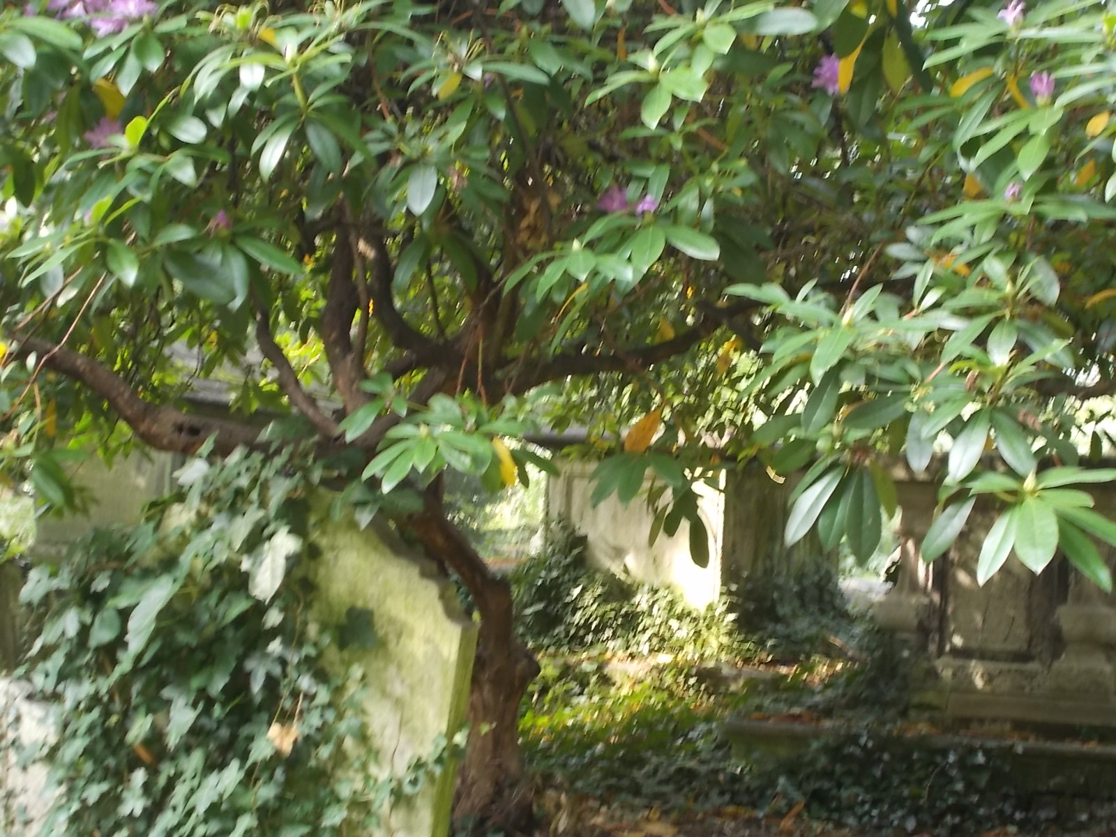 We were surprised to find a local resident and volunteer cleaning the stone and trimming the ivy. She'd brought her equipment and told us she found it unacceptable that the gravesite should be so neglected. We agreed, and the attendant quietly faded away, perhaps chagrined we'd found his duties equally neglected. We loved chatting with the volunteer, a immigrant to Britain in her earlier years. Brava to her! If (when?) we moved to Britain, I would hope Kristine and I would be out there trimming and scrubbing anything that needed attention too.