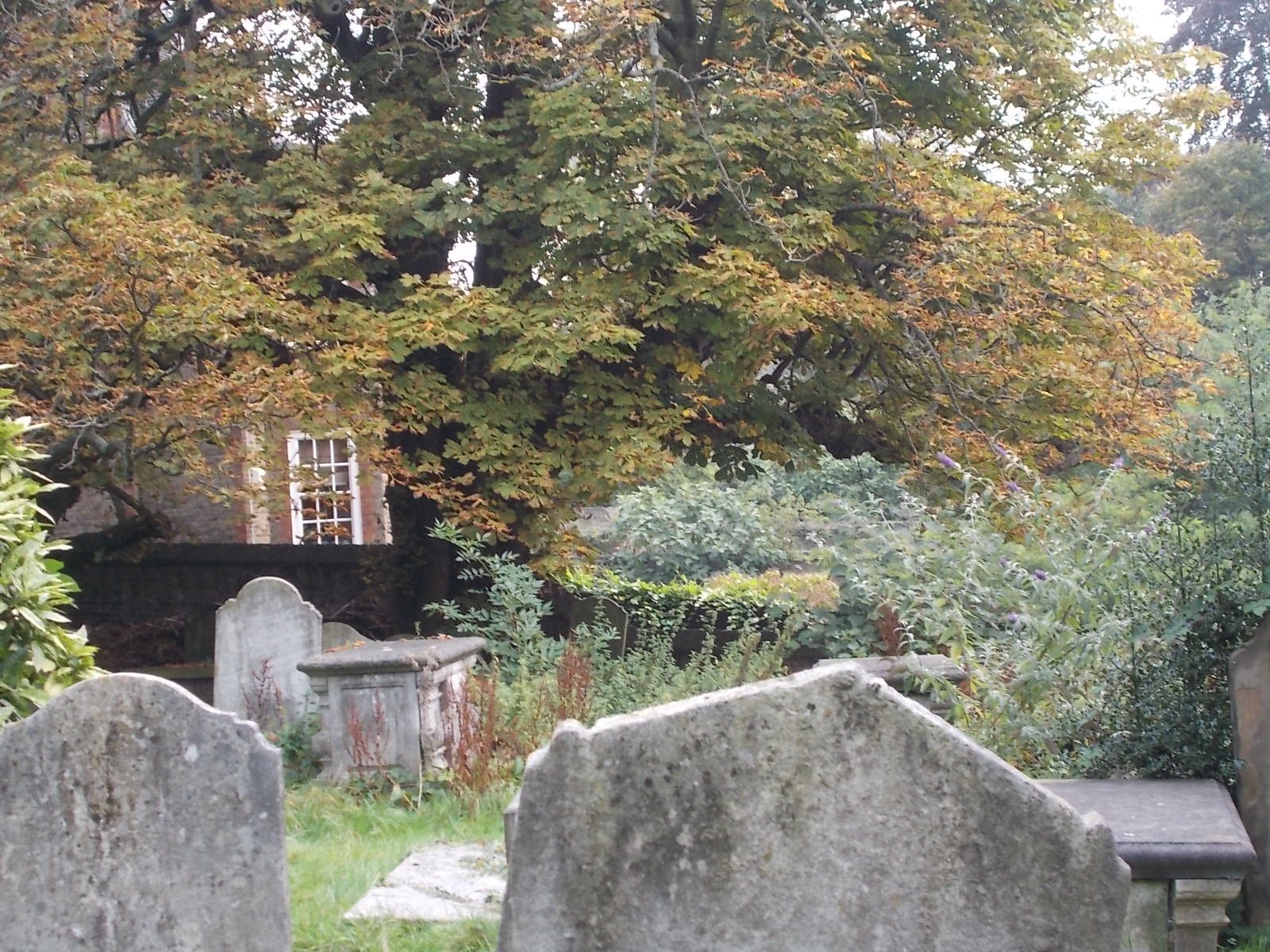A few of the graves near the church itself were well tended, but the majority of the graveyard was decidedly unkempt - the paths swept, but the stones tilting and leaning in every direction, overgrown with ivy and dead leaves. Certainly picturesque. Here are a few of the photos we took along the way.