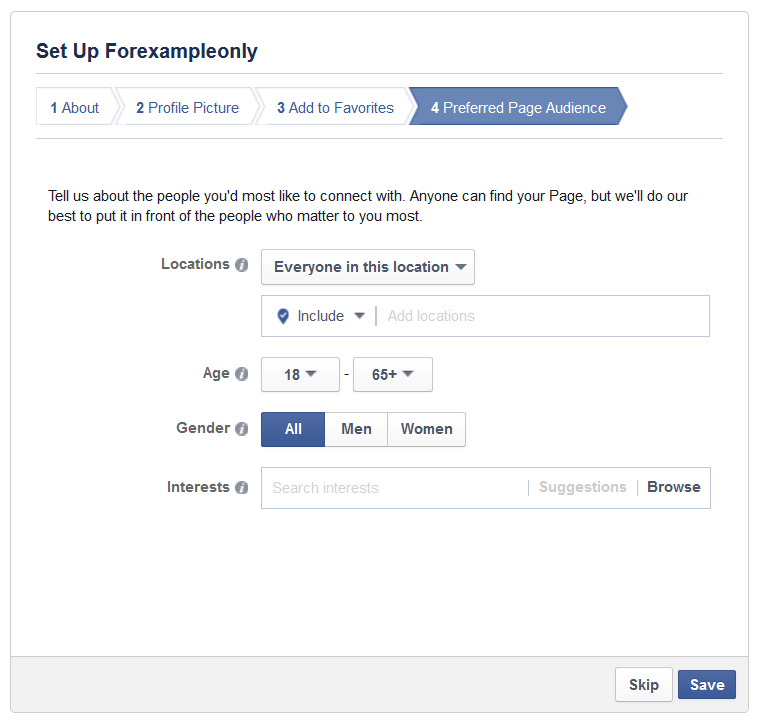 This is where you define your target audience. Hint: "everyone" is not a target audience. Be specific. These are the folks who will be shown your page most often.