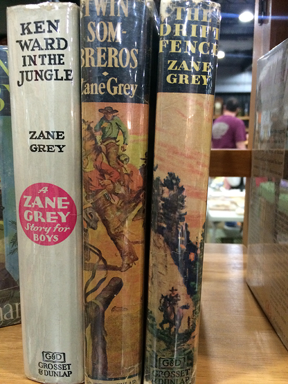 I'm working on a cover right now for a collection of short stories for children and young adults that the University of Minnesota Press is doing (in conjunction with the Mid-continental Oceanographic Institute/MOI). For that reason I just went back to look at some of the stuff I've come across over the last few months for inspiration – when I'm out in the world I generally try and keep my eyes open for interesting book covers. The images below come variously from the Miami Book Festival, a flea market in Paris, an antique market in Portland and a hotel in Astoria, Oregon... and elsewhere. Along with covers I'm also especially interested in ways designers play with a book's spine,. In my opinion it's an under-appreciated aspect of the package. If only contemporary books for adults were as playful and visually interesting as the old-school YA spines shown toward the bottom of this post.