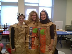 Kelly's team made the celebration last all day long. In addition to the author Skype read-alouds, it included a Book Lovers Breakfast, Book Swap, Reading Buddies, Guest Parent Readers, Collaborative Book Making with Grades 1 & 4, and a Character Convention where students and teachers dressed up as favorite book characters. Here are Kelly, Charlotte Cornel, and Stephanie Martin) who dressed as Robert Munsch's Paperbag Princesses!