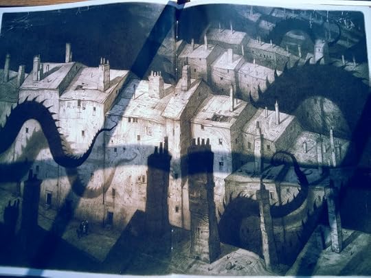 The book combines the sepia-toned early-immigrant feeling with a supernatural flair: buildings are fantastical or frightening, there are all sorts of strange creatures wandering around (apparently some sentient) and other, harder-to-describe stuff.