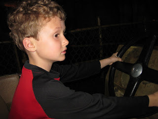 The first time Kid C rode on Indiana Jones, he was in the driver's seat. He was very nervous about the responsibility of driving the jeep: