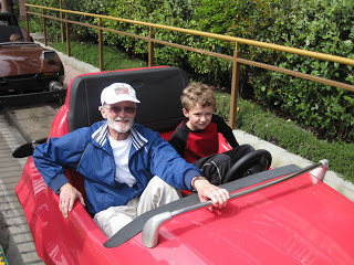 My dad hanging on for dear life, with Kid C at the wheel. Don't try this at home. It is not good for the chemo stomach.