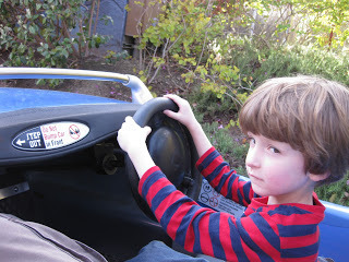 He wanted to switch seats with me, but the people in the rows behind him encouraged him to drive the car. He did fine. Enough that he was allowed on the ride again.