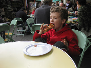 My dad's chemotherapy regimen makes his feet swell and blister, so he was our designated driver, which kid B found perfectly convenient. Neither of their feet ever touched terra firma.