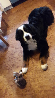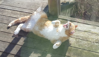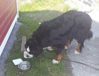 Lilla grynet rullade runt på verandan och sökte uppmärksamhet, kanske ville hon följa med?