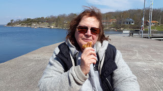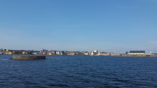 Här närmar vi oss Karlskrona och jag är nöjd med födelsedagen. Men den slutade inte där. När vi kom hem tog jag ut datorn och satte mig i solen och skrev några kapitel, inspirerad av dagen. "När du skriver mår du bra", sa maken och såg nöjt på mig när jag knattrade frenetiskt på tangenterna.