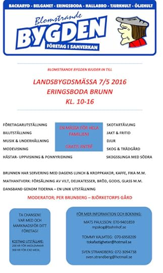 Det finns mycket, mycket mer att göra än att köpa mina signerade böcker. Brunnen serverar kroppkakor, Ponnybus är där och har ponnyridning, Högalunds Alpackor kommer, barnteater, musik och underhållning. Glass i stora lass från Björketorps Gård och mycket mer! Kika in på bilden ovan med all information om Landsbygdsmässan på Eringsboda brunn, nu på lördag 10.00-16.00. Hoppas vi ses!