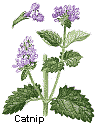 CATNIP: I like catnip. We've grown it for years whether intentionally or not. It comes back freely. Yes, our cats like it but not to the point of ecstasy. It's a member of the mint family but has a distinctively different scent. A hardy, upright, perennial, it has sturdy stems bearing hairy, heart-shaped, grayish-green leaves. The flowers are white or lilac and occur in several clusters toward the tips of the branches. Catnip is a native of Eurasia, naturalized in North America so that it seems as if it's always grown here.