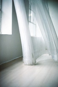 Wordlessly he sweeps his young wife into his arms and carries her over the threshold. From the waterfront the sound of a band wafts on the gentle wind. The atmosphere is influenced by the sound of it like the scent of lilac and the pale purple twilight. White curtains rustle in the window. The moon shines on the hardwood floor. Stars blink on the in the heavens. Crickets sing somewhere out in the cool night.