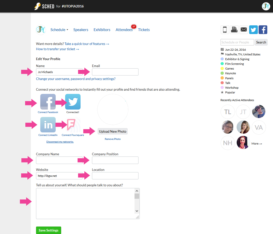 Once you're done and you've added your pic and details, click save settings.