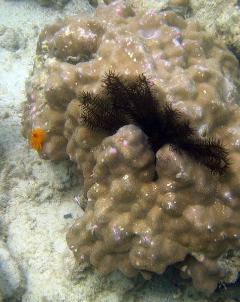 ...so naturally, we had to swim out there and check it out. Last time we snorkeled here, the visibility blew and there was a jet skier making things a wee bit dangerous, but today? The water was crystal clear and there were no jet skis in sight. So we made the swim, which was, I don't know, 100 meters or so, and inspected the local wildlife... (all photos from here on out are by my husband)