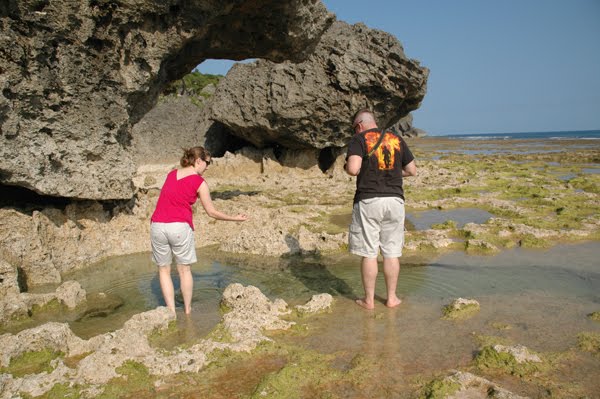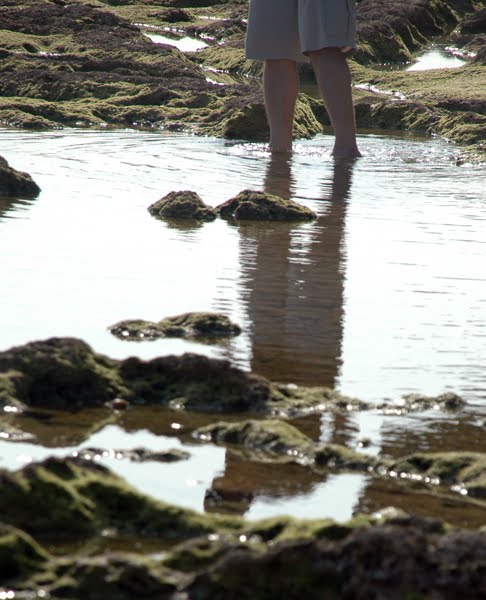 Low tide. Warm water. Off with the shoes and into the tide pools! Not like there's any deadly cone snails around to sting our unprotected feet or anything.