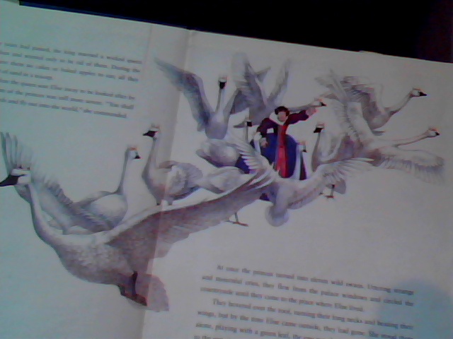 A picture of the picture book heroine, after she runs away from the palace and her stepmother. This doesn't really happen in The Swan Kingdom. What you can see here though, is that the heroine has red hair, like Alexandra (I just couldn't think of the heroine of this story any other way) although Alexandra has green eyes (like me) and the heroine of the picture book has grey eyes. I also think this picture sums up the way my heroine, Alexandra perceives her brothers throughout the book: as a part of nature which she cannot quite reach. The picture book reads: All night long Elise dreamed of her brothers. Once more they were children playing together, carefree and loved... This may have been why dreams played such an important part in The Swan Kingdom.