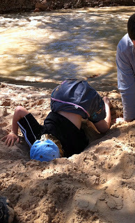 Kid C deep in the narrows. We encouraged him the entire way, and he only believed us for a few minutes when we told him he'd have to cut his arm off to make it through the last bit.