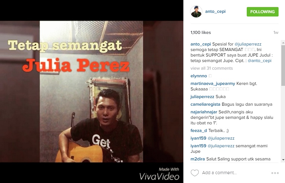 Postingan Anto Cepi pun akhirnya direpost di akun Instagram Julia Perez.