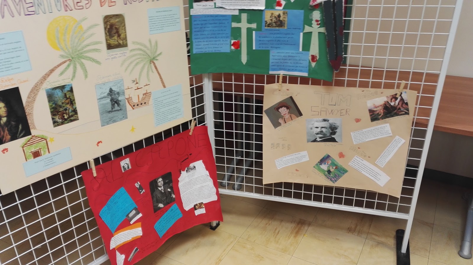 Bref, dans ce collège, ça bosse. J'ai rencontré trois classes de sixième, toutes les trois très différentes. Une journée pleine de vraies jolies surprises. Un accueil en chanson et poésie, à vous coller les larmes aux yeux, tiens. Et je ne me suis pas gênée. Des saynètes jouées avec le coeur, des rires. Des exposés sur les personnages qui fascinent Zach, le héros de La Drôle d'évasion. Tom Sawyer, Barak Obama, Steven Spielberg, Luffy de One piece, Al Capone, Billy the Kid ...