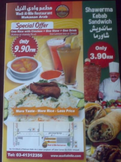 I got bored eating the same old, same old food everyday, and decided to try something that's not exactly Western or Asian in nature. I went to try something of a mix between Mediterranean and Middle East in Wadi Al-Nile, Platinum Walk, Danau Kota, Kuala Lumpur while I was waiting for my boy to finish his class.