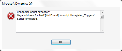 Mariano latest post looks at Unhandled script exception: Illegal address for field '[Not Found]' in script 'Unregister_Triggers'
