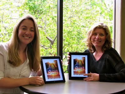 And finally, I love this picture of my agent, Laura Rennert (on right), and her publishing manager, Lara Perkins (on left), showing off SOLSTICE on their iPads! Now I really need an iPad. Look how pretty it looks!