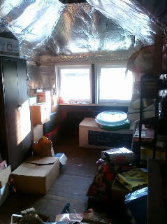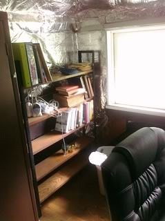 As I said last time, I'm still in a holding pattern - waiting for paperwork to start my new job, waiting to hear from agents on the new project. Waiting, waiting, waiting. So I used my time to work more on my writing loft project. Now that the electric is finished, I was able to move my stuff up from downstairs.