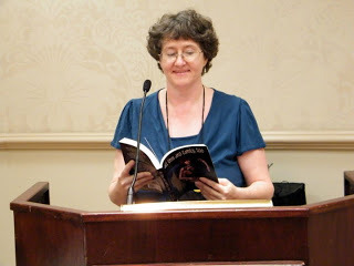 So, who did they fall in love with? My wife! I can't blame them; my wife is charming, intelligent, and writes good mysteries. Hell, it worked on me, and I am a tough sell (just ask her). I meandered around, wondering what I should and shouldn't say to these women (who held my book sales in their hands), while Gwen was surrounded by women and getting invited to lunch. I was jealous in more than one way.