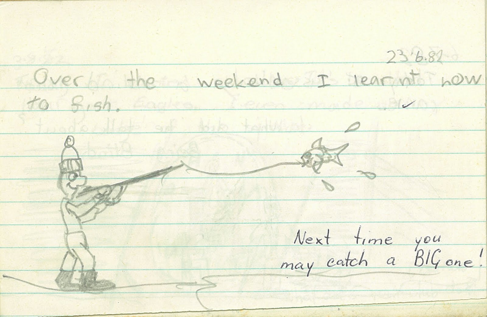 Fantapants archive reminds me how incredibly condescending some teachers were when they commented on your work. I mean, given that the size of that fish is about the same as Mr F's 9-year-old head, I'd say that's already pretty BIG. Harumph.
