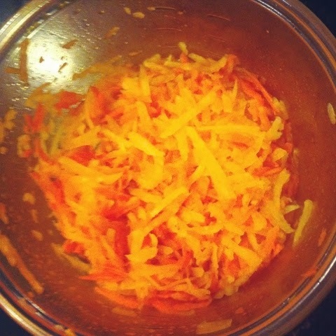 4. Root vegetables. They are the seasonal staple of temperate zone and national food of all cold European countries (along with fish!) Beets are a given, and sweet potatoes are always nice. I usually convert my salads to root-veggie based in the winter, as they feel heartier that usual summer greens. Here's the one I made today: daikon radish and carrots grated on the largest holes of a standard box grater, seasoned with sea salt and sea buckthorn oil. You may prefer any other vegetable oil, such as sunflower or olive.