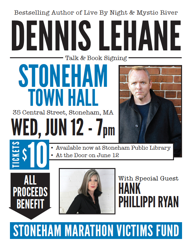 How wonderful to be invited to introduce the incredible Dennis Lehane...and share the stage with him at this benefit for the victims of the Boston Marathon bombings. Hope to see you there!