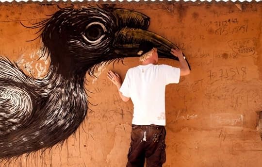 Belgian artist ROA, famed for his massive murals of dead animals you can see on walls in Chicago (recently), Brooklyn, Berlin and London, recently took his talents to the Gambia in West Africa. His point is to " … repopulat[e] the cityscape with animals, as a way to have them re-enter the contemporary landscape that was once theirs." Here are some samples. The Gambia trip was as part of the graffiti art project Wide Open Walls.