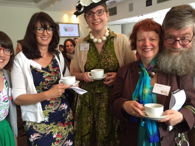 Elissa Elwick, Liz Pichon, Sarah Macintyre, Mary Hoffman and a photo-bomber