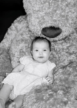 I bought him shortly after finding out I was pregnant with our second daughter. I always wanted a giant stuffed-animal like this when I was a kid. And my plan was to use this bear as a prop to show how much our second daughter grew from month-to-month.