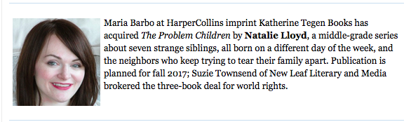 - THE PROBLIM CHILDREN series is scheduled to begin in Fall 2017. Those are the books I mentioned yesterday, that are being published by the swanksters at HarperCollins.