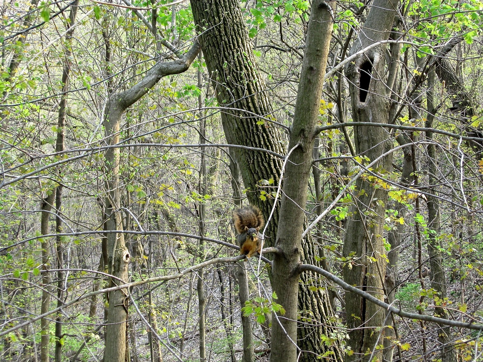 A hole in the trunk of another tree has become a new home for squirrels. I think the trunk might be hollow. Soon its branches will let go under their own weight, and the tree will fall. Then it will become a home for insects and grubs, and attract a new set of birds. Its body will be reabsorbed into the earth and nurture the next generation.