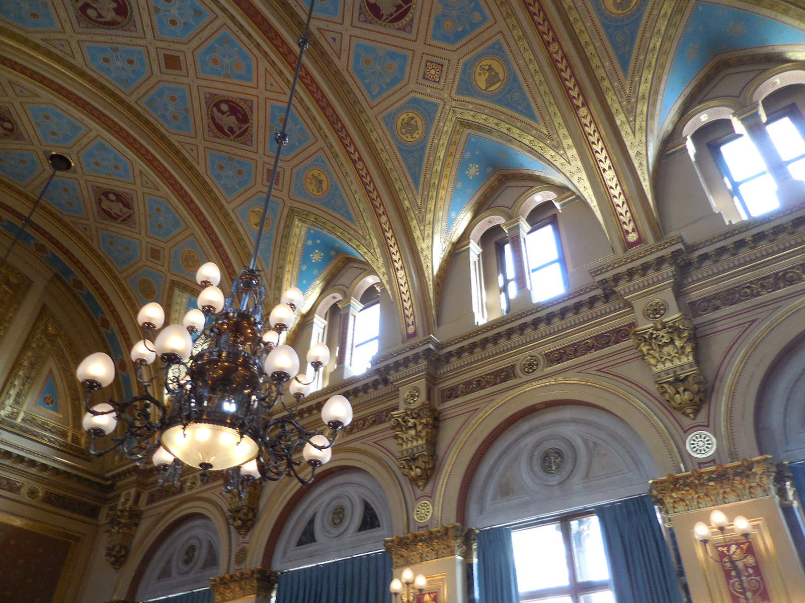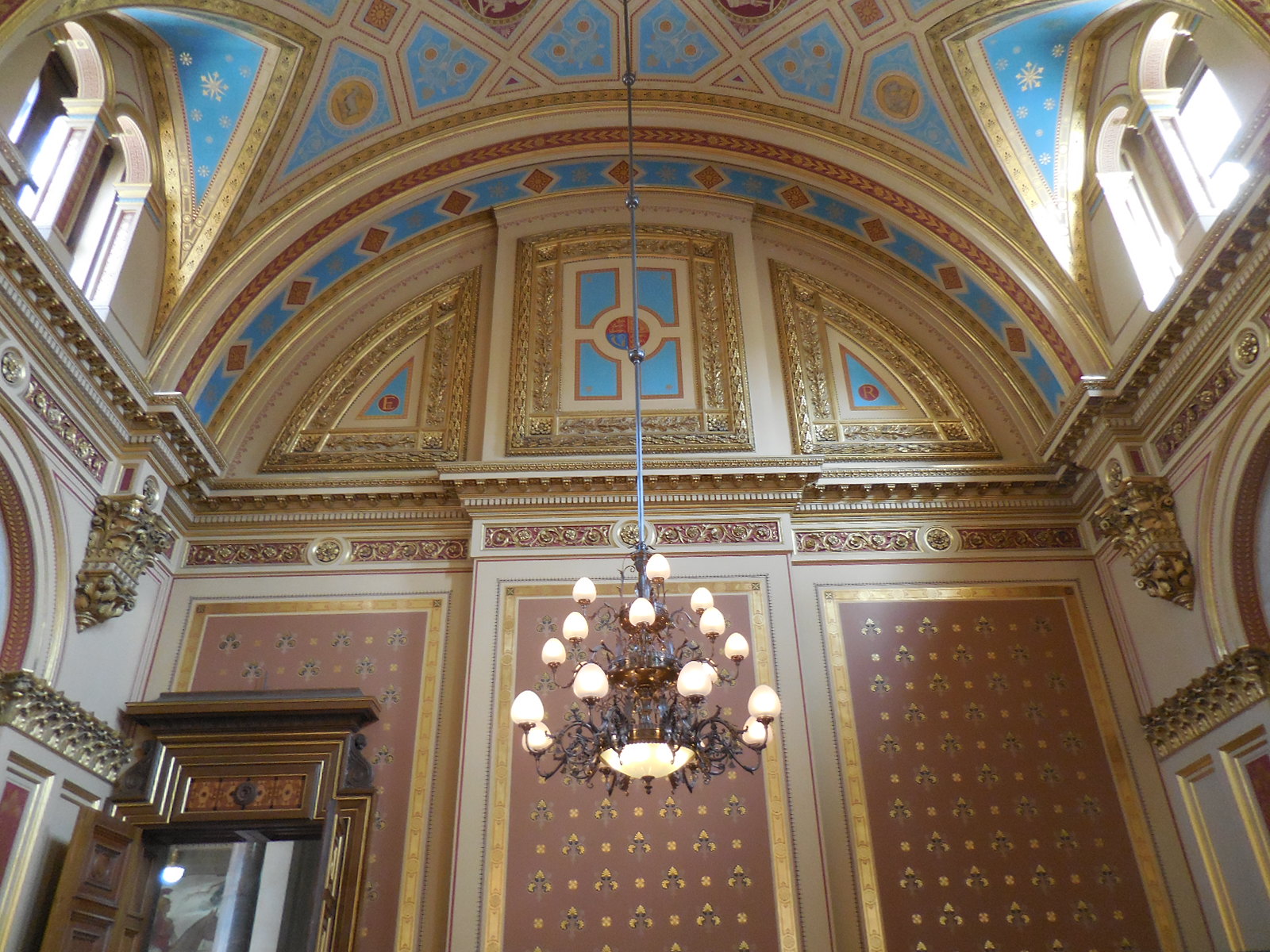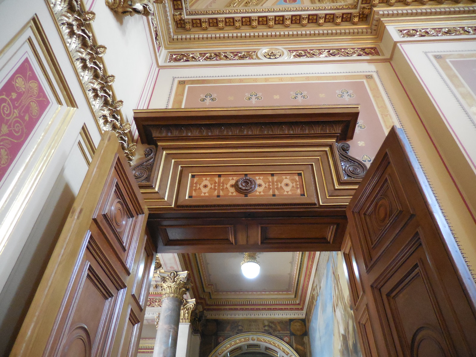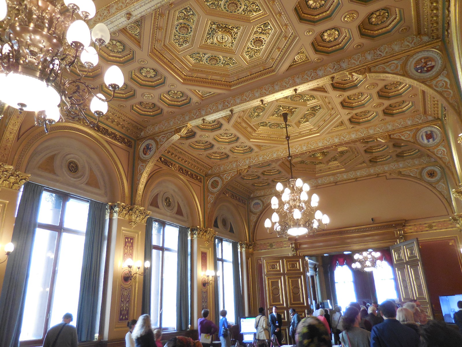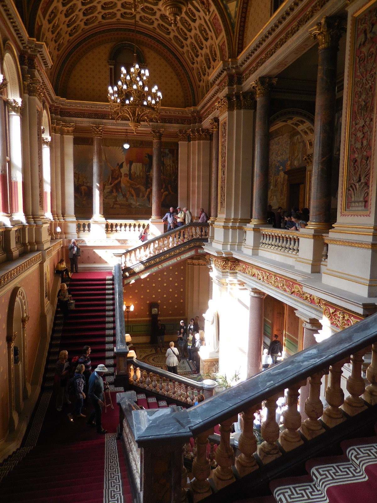 We did not have a long wait in line before we entered, part of a throng as eager as we were to see what was inside. The stairway was stunning.