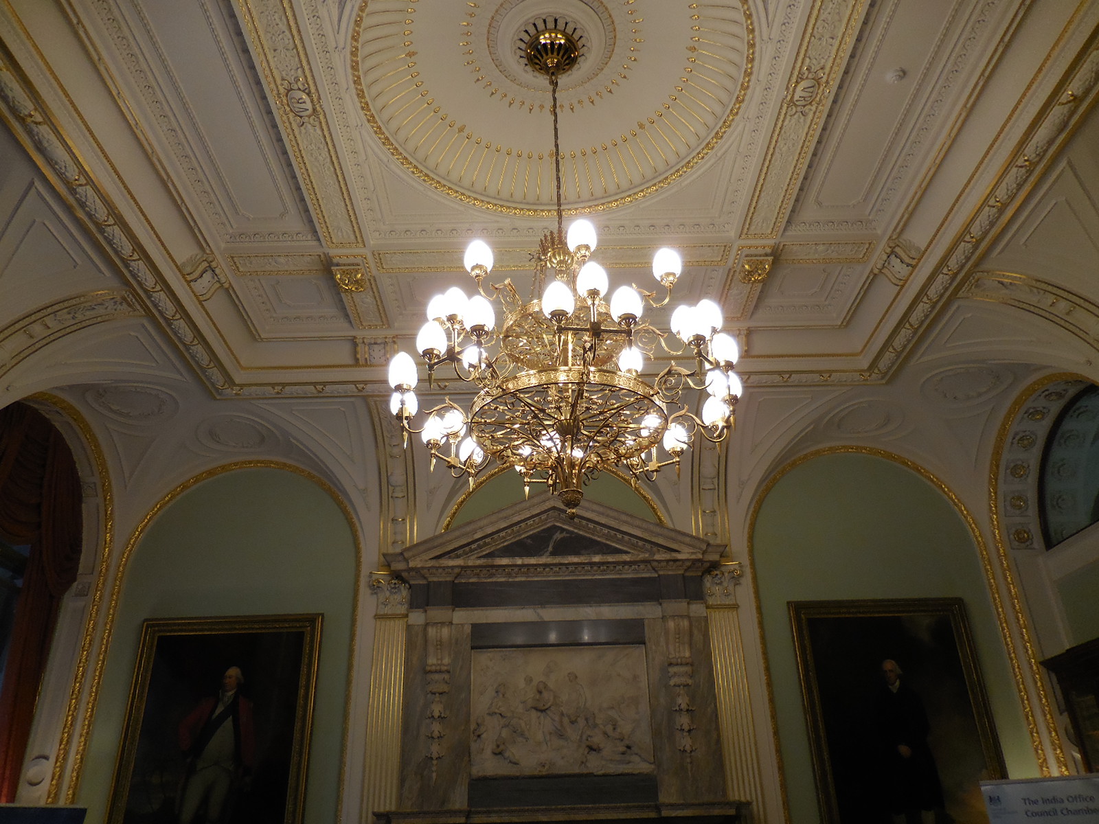 This vast building on Whitehall contains many architectural and decorative treasures, probably far more than we got to see. But perhaps that was a good thing, since so much tends to make one's eyes glaze over. The building (FCO) is headed by the Secretary of Foreign and Commonwealth Affairs, who sits in the Cabinet. The building, designed by George Gilbert Scott, was completed in 1868; it formerly housed four separate departments: the Foreign Office, The India Office, the Colonial Office, and the Home Office.