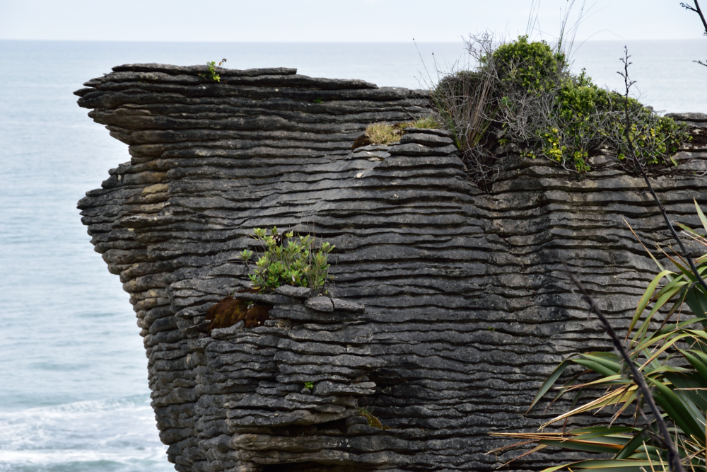 The main attraction at this stop is Pancake Rocks. Layers of limestone rocks have been eroded and shaped by rain and ocean into what looks like ... you guessed it... stacks of pancakes.