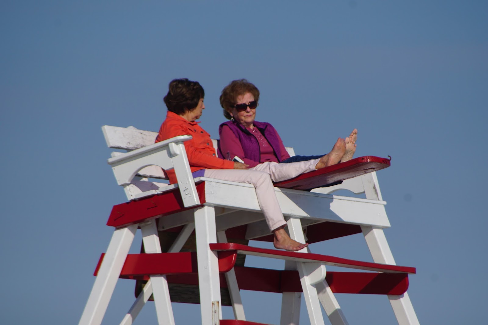 Not long ago, in Cape May, I came upon this scene. Two dear friends talking up in the abandoned lifeguard chair. Side by side, and then some.