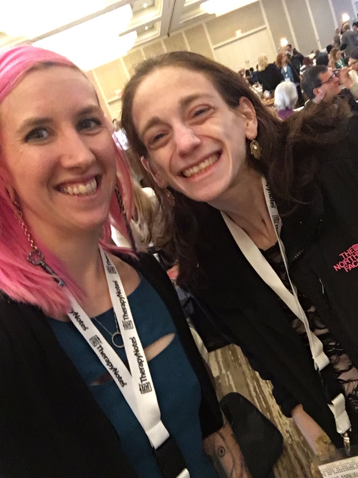 Kim & AmyI soon found Kim Zapata, a fellow panelist , and we struck up a great conversation. I am mostly apartment bound and my social life is one of a stay-at-home school dad. Nobody I know blogs about mental health, or, frankly, cares about the subject, so it was a delightful pleasure to trade blogging stories with a fellow mental health writer. Kim already knew me, which surprised me. When she first began her blogging journey, mine was one of the first blogs on depression that she found. She even found what I wrote helpful. That was very humbling for me. I don’t often get the opportunity to meet face to face with people who read my work. Kim was doing what I wanted to be doing more of, which was freelancing successfully, so I eagerly took mental notes. In fact, I’ve just started reading How to Be a Well-Paid Freelance Blogger by Carol Tice on my flight from Utah, so it was perfect timing to have that conversation.We couldn’t find Natasha Tracy, the other panelist, so we found a table for the keynote and continued talking. We also struck up a nice conversation with a couple that was already at the table. I couldn’t believe how well I was doing socially. Now, it’s possible that they all have a completely different take on our conversations, but people don’t generally smile warmly while being tortured.