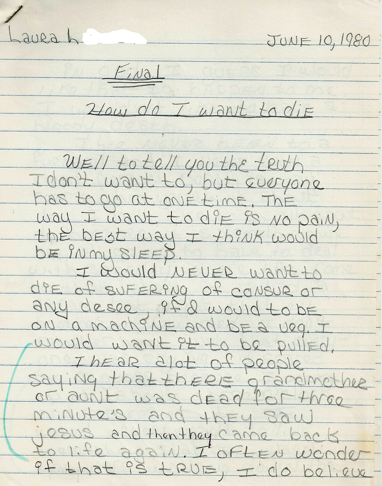 In June 1980 I gave my final exam as a high school teacher. Pretty simple. I gave my students 20 random questions to choose from--how do they feel about boys who wore shirts with alligator logos on them, what was "a fag" (the routine insult of the day), how would they most like to die...or vice versa. All they had to do was write for 90 minutes on one or all of them. I came upon the archive recently...here's a sampling. To paraphrase Bill Simmons in another context, "Yep, there were my students." Take it away, kids...