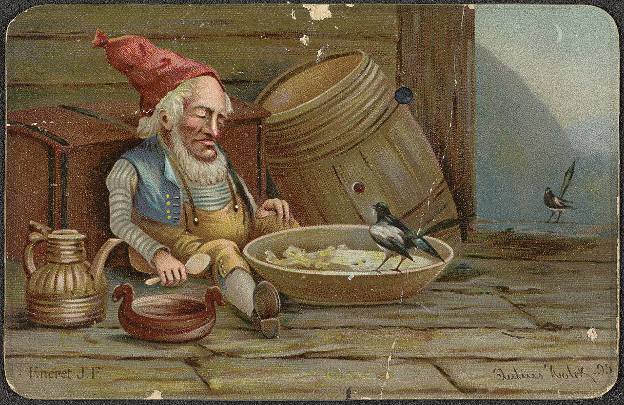 Pixies - John D Batten - Wikimedia CommonsNisse eating barley porridge - Wikimedia CommonsThe dwarves Brokkr and Eitri making the hammer Mjölnir - Arthur Rackham - Wikimedia CommonsAlvissmal - Alviss answers Thor - Wikimedia Commons The Celtic Vanguard - Wikimedia Commons
