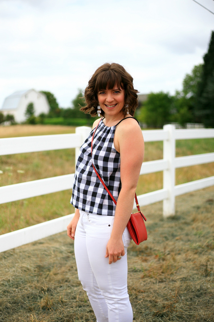 this fitted one) and I love them both SO much! They are both on my all-time fave DIYs list! I had some extra fabric from the larger buffalo check one, and have also been loving loose, simple tops this summer... so I made very efficient use of it and whipped up this top!