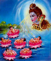 Over time, the genesis of the cure got romanticised. The ray of thoughts from the physicians became grandiosed as ray of fire arising from Lord Shiva's Netrikann (Third Eye); the train of thought wavelengths became Lord Agni who carried the ray; the six Karthigei pengal as the executors of the task; Goddess Sakthi as the alchemist who fused the ingredients and gave it potency. The invincible enemy, the disease, is, of course, the villain, the Asuras.