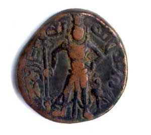 Yaudheya coinage of Punjab (300-340 AD): Karthikeya standing facing, holding sceptre; peacock on right.http://asok22.wix.com/rifle-range-boy
