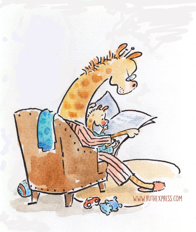 I drew this giraffe as a sketch in my Story Ideas notebook. Then I redrew him as a black and white dry brush sketch. Then I decided to paint him and add to his story.