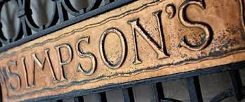 Known for it's joints of beef wheeled tableside on huge, steel trollies, Simpsons has always been a favourite of those with a literary bent. From Wikipedia :  In E. M. Forster's  Howards End , Henry Wilcox is a devotee of Simpson's. P. G. Wodehouse devoted several paragraphs of  Something New  to the restaurant, and in his novel  Psmith in the City , his two heroes dine there: "Psmith waited for Mike while he changed, and carried him off in a cab to Simpson's, a restaurant which, as he justly observed, offered two great advantages, namely, that you need not dress, and, secondly, that you paid your half-crown, and were then at liberty to eat till you were helpless, if you felt so disposed, without extra charge." Simpson's is also featured in Wodehouse's "Cocktail Time" as the restaurant that one of the characters, Cosmo Wisdom, chooses to lunch at after leaving Prison. Simpson's also features in the Sherlock Holmes stories. Watson joins Holmes there during the story "The Illustrious Client" the detective is sitting "looking down at the rushing stream of life in the Strand."
